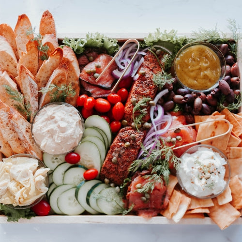 Our smoked salmon boards feature rich, buttery salmon paired with fresh accompaniments — an elegant and delicious choice for any occasion. -