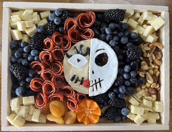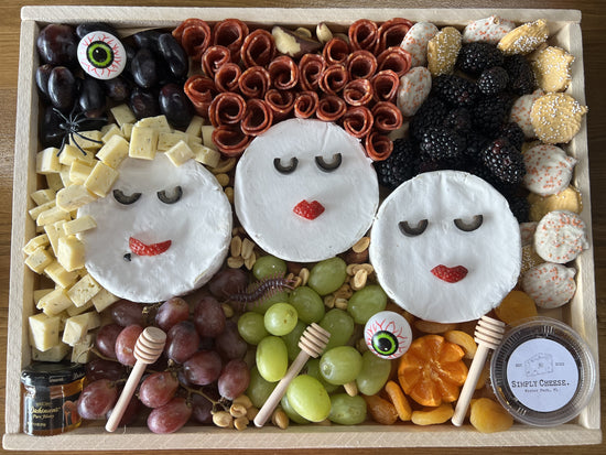 A spellbinding board of cheeses and charcuterie, playfully inspired by the Sanderson sisters—magical flavors, wickedly good pairings, and enchantment in every bite.