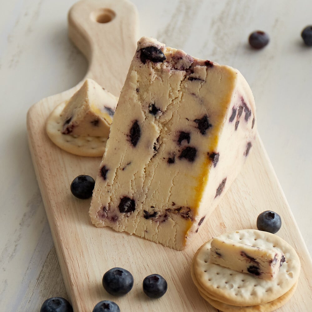 Blueberry Stilton blends the bold flavor of blue cheese with sweet, juicy blueberries for a unique taste experience. Creamy and fruity, it's excellent on crackers or paired with a glass of rosé or dessert wine.