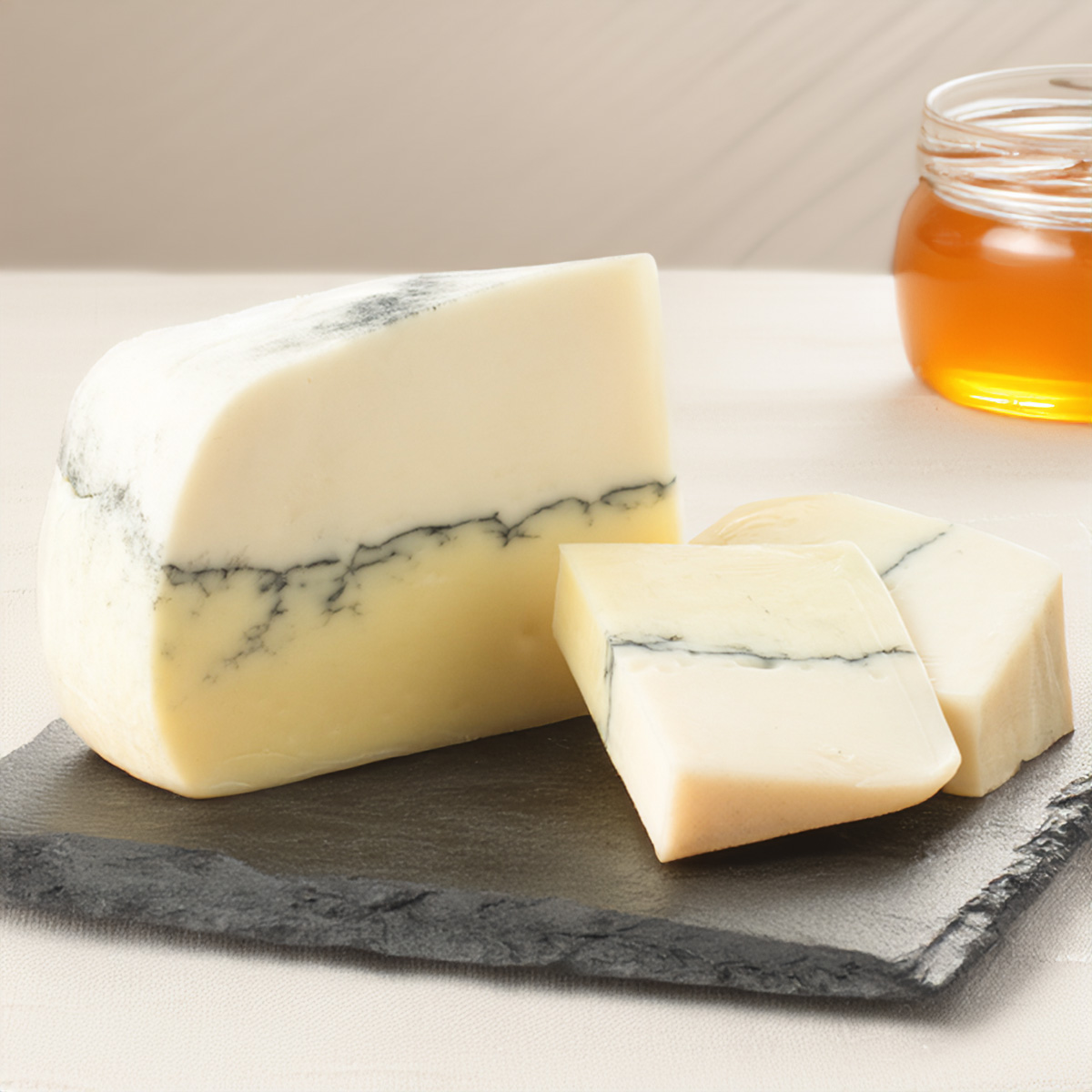 Cambozola is a soft-ripened cheese that blends the creaminess of brie with the tang of blue cheese. Mild and approachable, it’s an excellent entry point to blue cheeses and pairs beautifully with honey, pears, and Chardonnay.